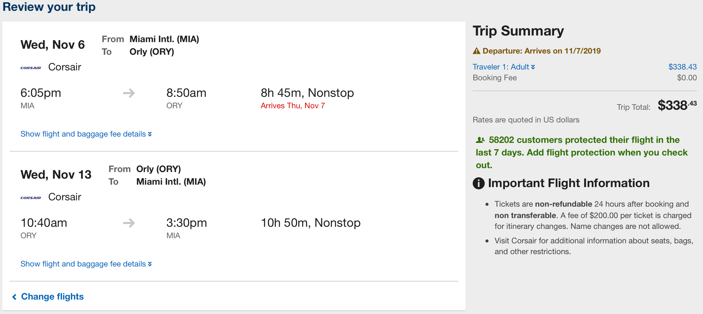 Miami (MIA) to Paris (ORY) for $338 round-trip nonstop on Corsair: