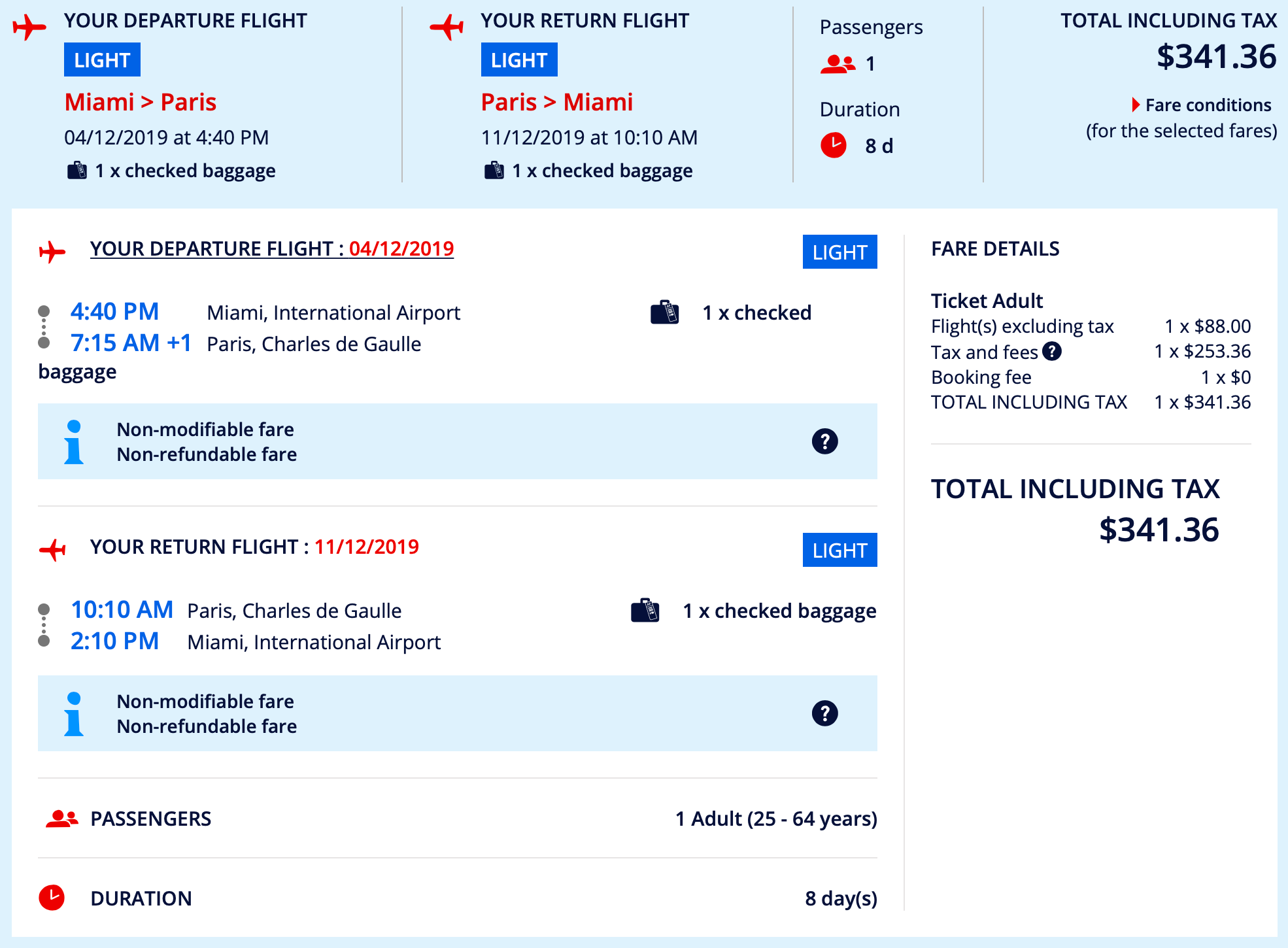 Miami (MIA) to Paris (CDG) for $341 round-trip nonstop on Air France: