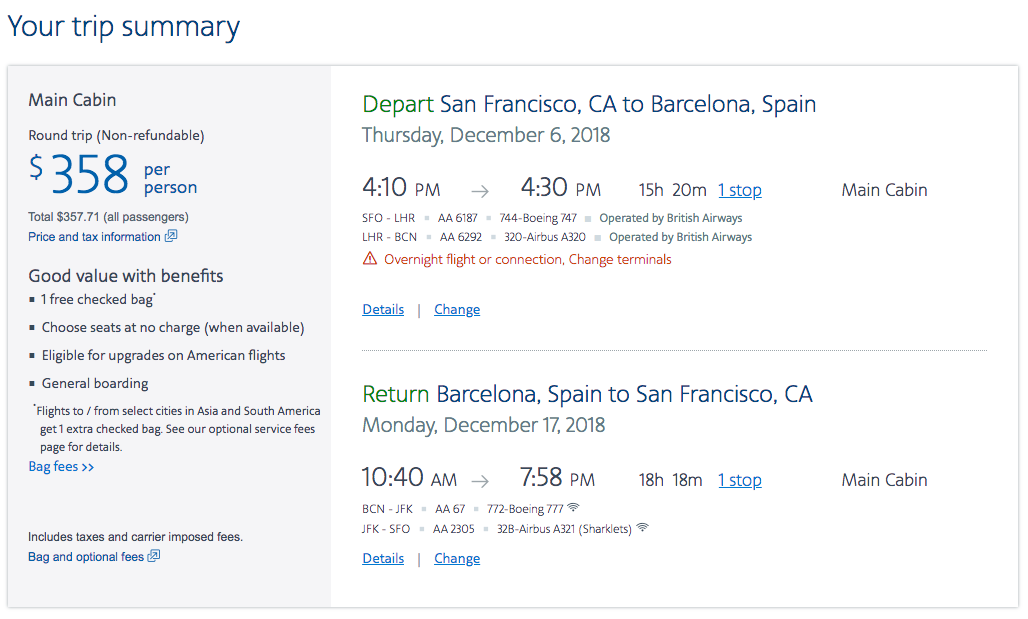 San Francisco (SFO) to Barcelona (BCN) for $358 round-trip on British Airways/American in December in regular economy: