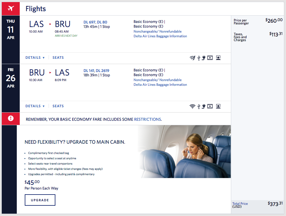 Las Vegas (LAS) to Brussels (BRU) for $373 round-trip on KLM in April in basic economy: