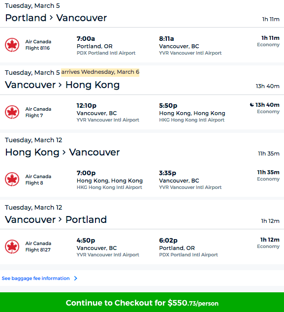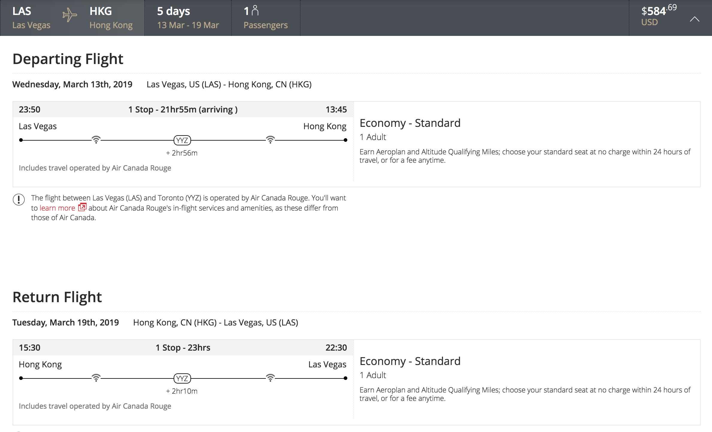 Las Vegas (LAS) to Hong Kong (HKG) for $585 round-trip on Air Canada: