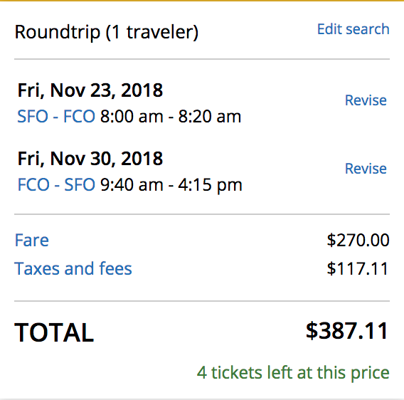 San Fransisco (SFO) to Rome (FCO) for $387 round-trip on United: