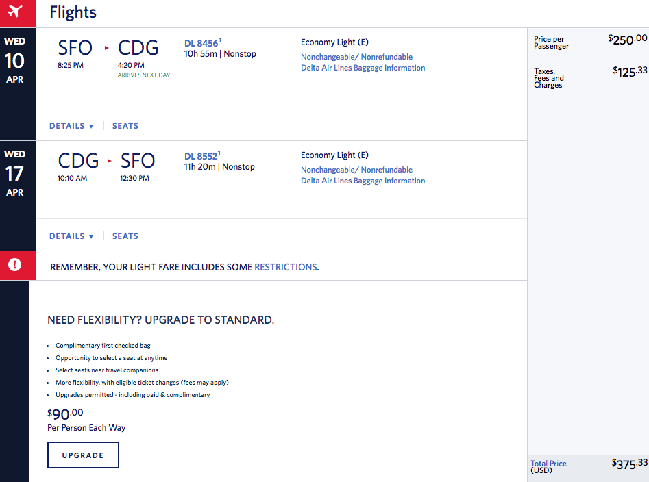 San Francisco (SFO) to Paris (CDG) for $375 round-trip nonstop on Air France via Delta:
