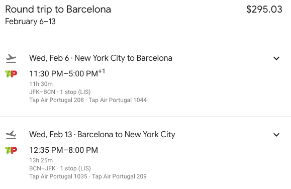 New York (JFK) to Barcelona (BCN) for $295 round-trip on TAP Portugal via Priceline: