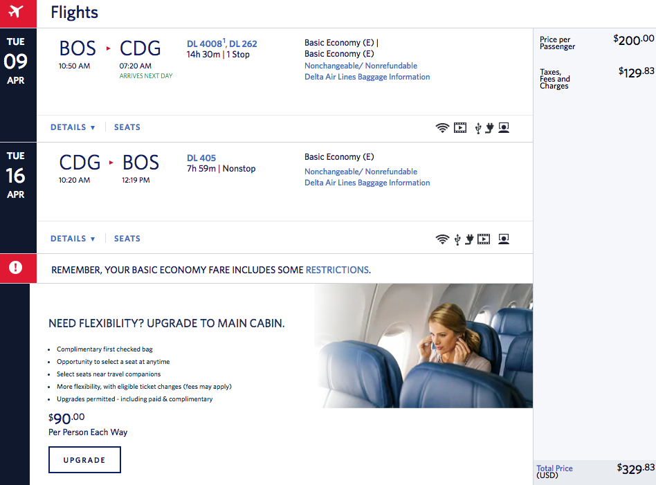 Boston (BOS) to Paris (CDG) for $330 round-trip on Delta: