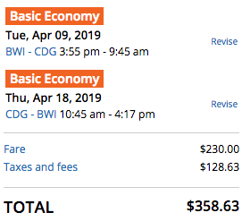 Baltimore (BWI) to Paris (CDG) for $359 round-trip on United: