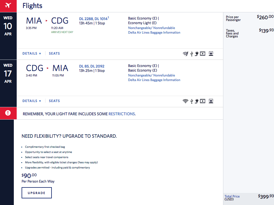 Miami (MIA) to Paris (CDG) for $400 round-trip on Delta: