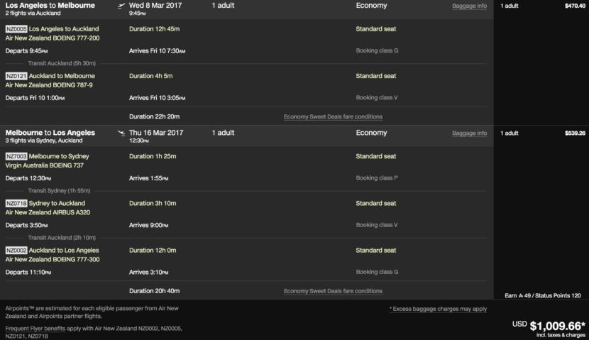 Los Angeles (LAX) to Melbourne (MEL) for $1,010 round-trip in March: