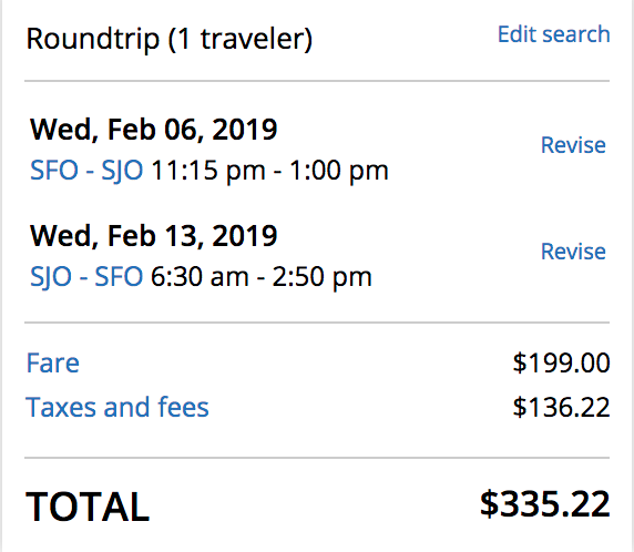 San Fransisco (SFO) to San José (SJO) for $335 round-trip on United: