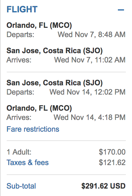 Orlando (MCO) to San José (SJO) for $292 round-trip on JetBlue: