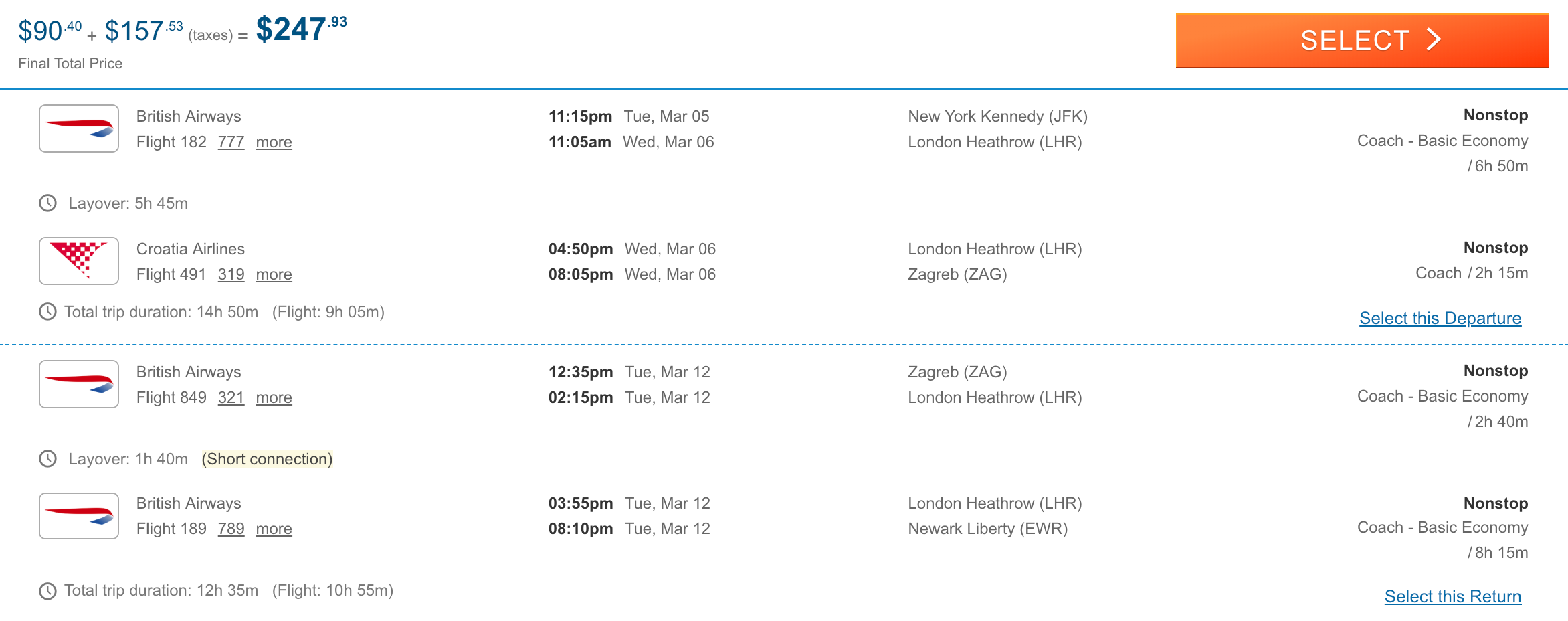 Airlines: British Airways, Iberia, American, Croatia Airlines