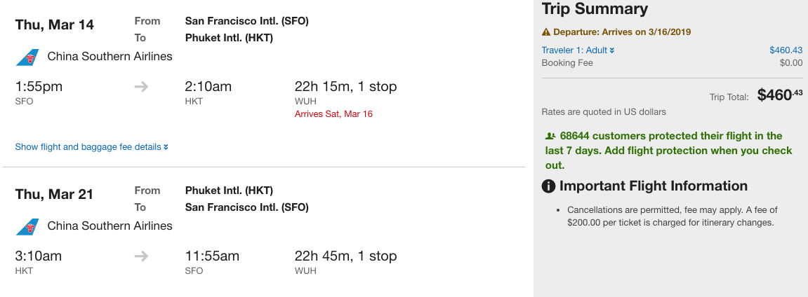 San Francisco (SFO) to Phuket (HKT) for $460 round-trip on China Eastern via Expedia: