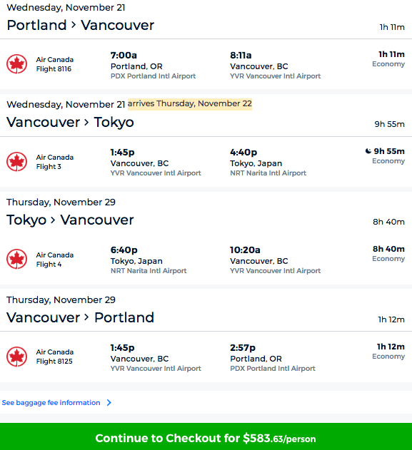 Portland (PDX) to Tokyo (NRT) for $584 round-trip via Priceline: