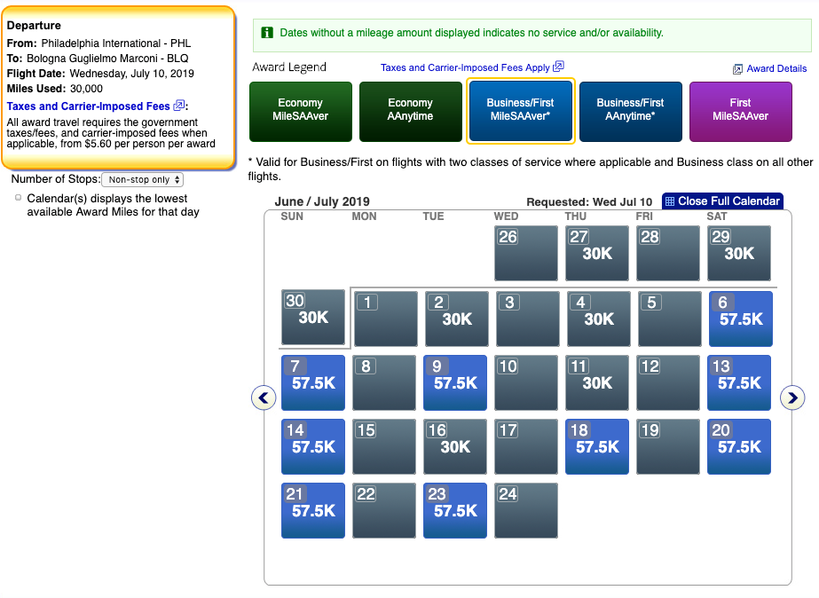 To book, head over to AA.com and plug in your preferred departure airport and dates. Note that American only flies this route a few times a week, so you may not see availability everyday. And many days have multiple saver awards available, so you may be able to fly your entire family to Italy on the cheap.
