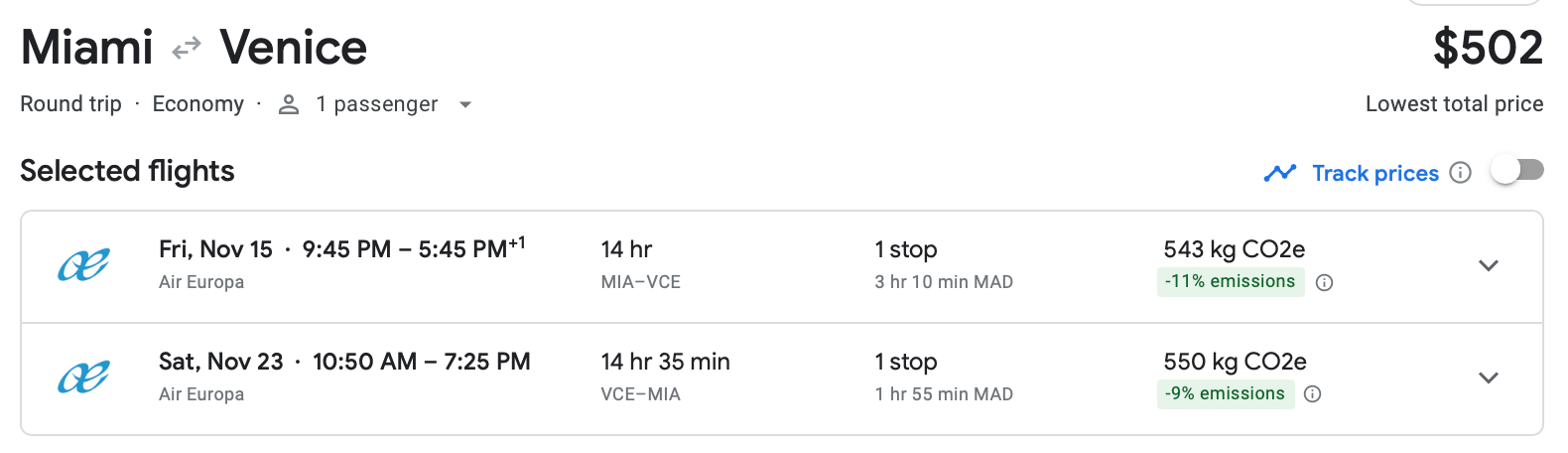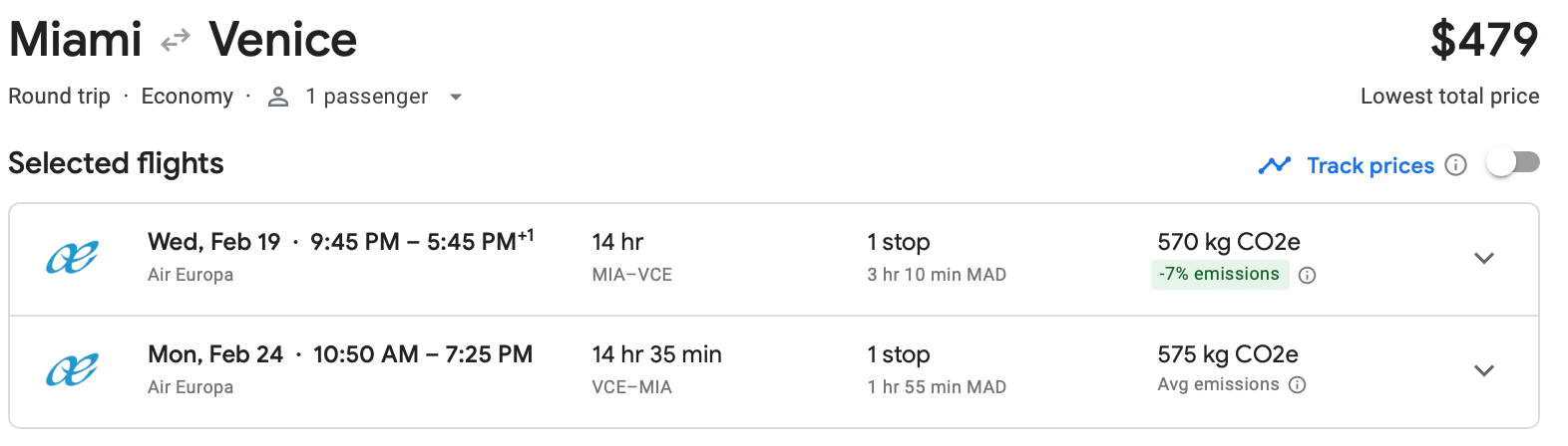 The prices are even better for the Miami-to-Venice itinerary in February, when you can book an Air Europa ticket for just $479 round-trip.