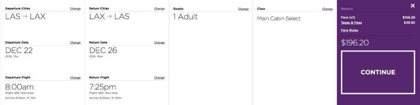 Las Vegas (LAS) to Los Angeles (LAX) for $196 round-trip in Main Cabin Select: