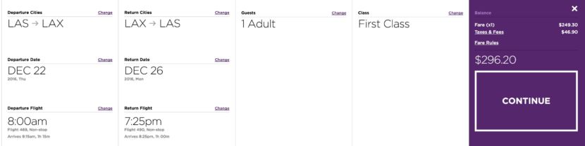 Las Vegas (LAS) to Los Angeles (LAX) for $296 round-trip in first class:
