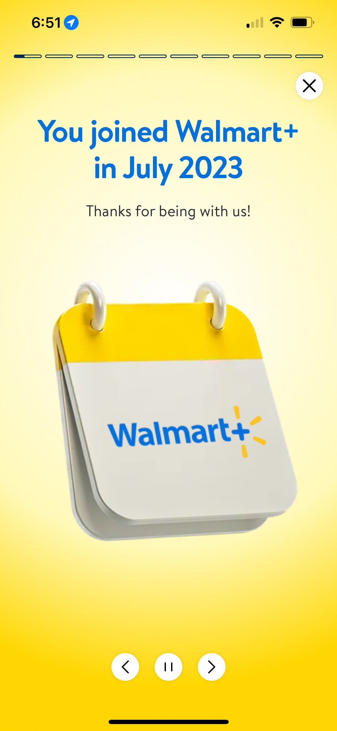 Walmart+ gifts for subscriber notification page.