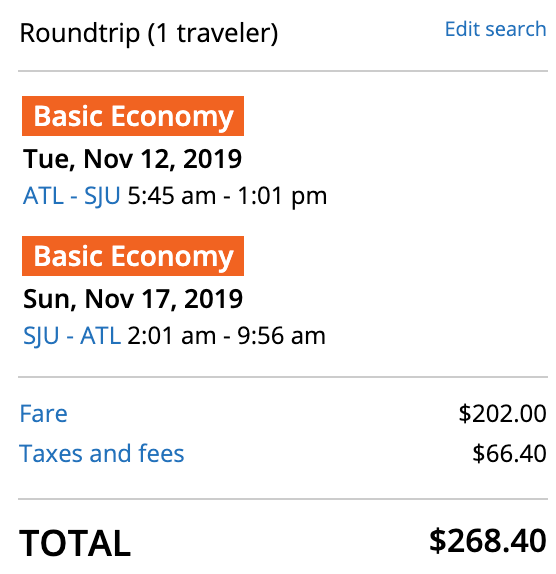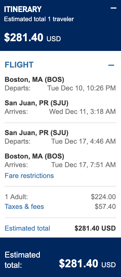 Boston (BOS) to San Juan (SJU) for $281 round-trip on JetBlue: