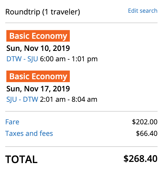 Detroit (DTW) to San Juan (SJU) for $268 round-trip on United: