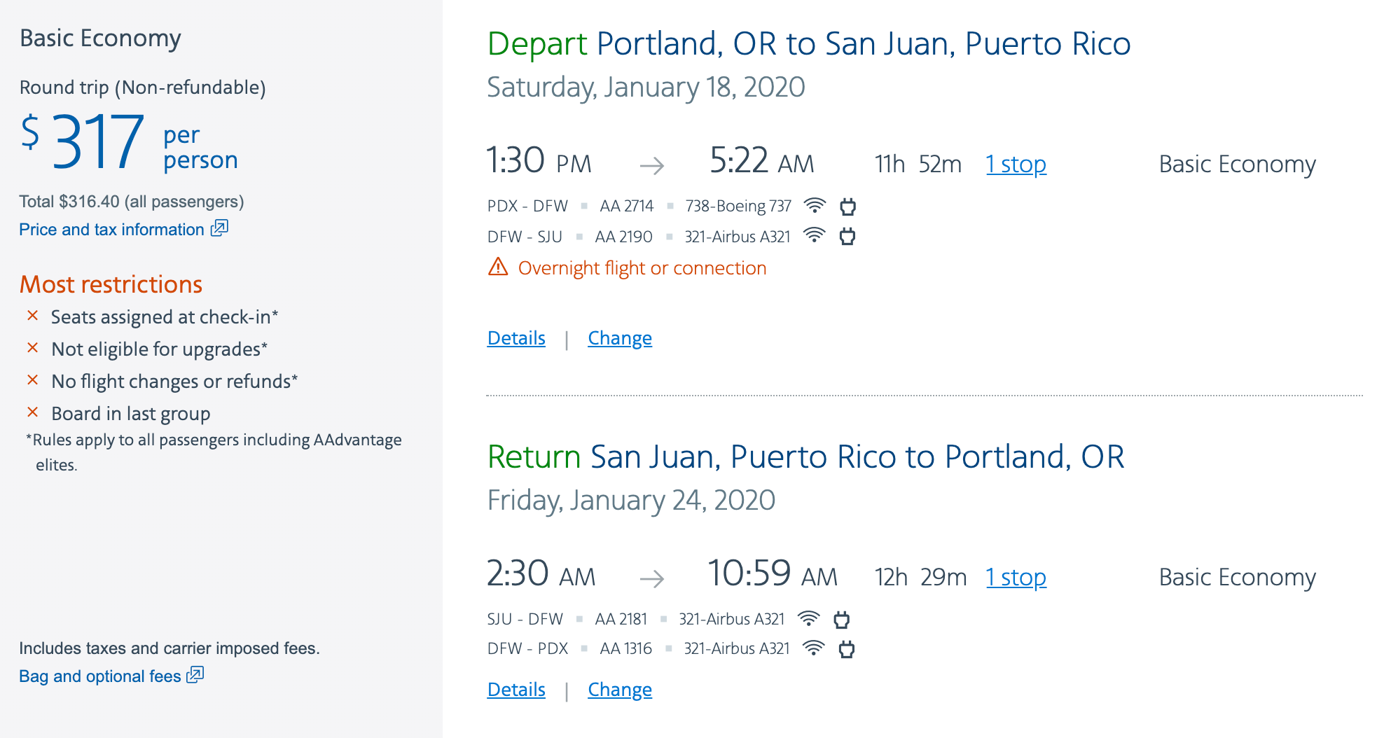 Portland (PDX) to San Juan (SJU) for $317 round-trip on American: