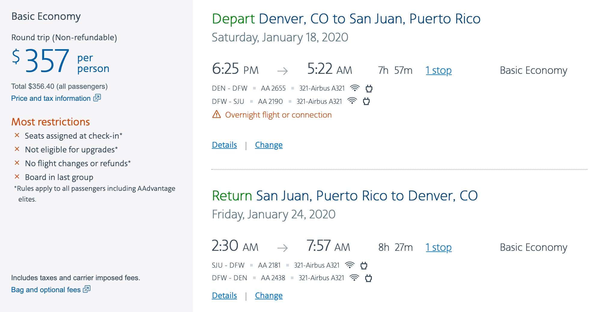 Denver (DEN) to San Juan (SJU) for $357 round-trip on American: