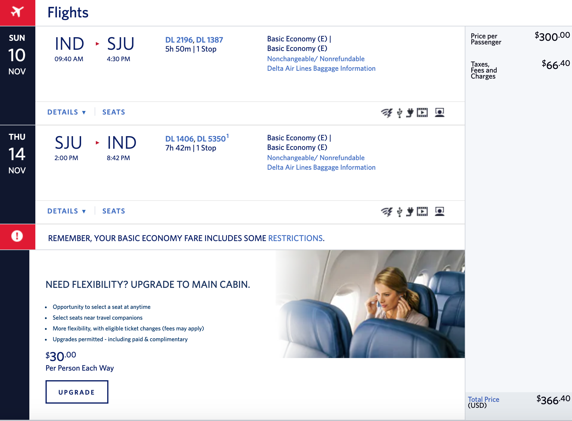 Indianapolis (IND) to San Juan (SJU) for $366 round-trip on Delta: