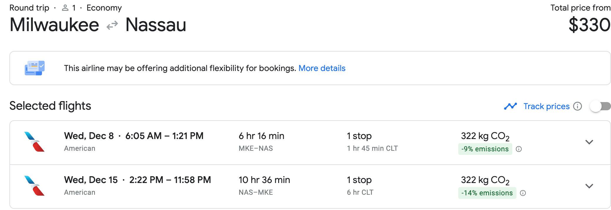 Speaking of, since I am sure Milwaukee is absolutely brutal in the winter, how does an early December flight sound for $330 round-trip on American?