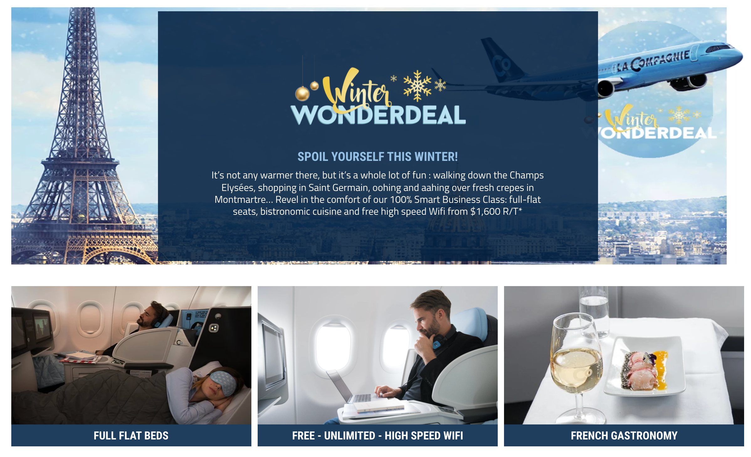Do you ever daydream about booking a last-minute trip to Paris? Well, it's good news for you and me both because La Compagnie is running a "Winter Wonderdeal" on business-class flights booked to the City of Light through Dec. 12, for $1,600 round-trip.