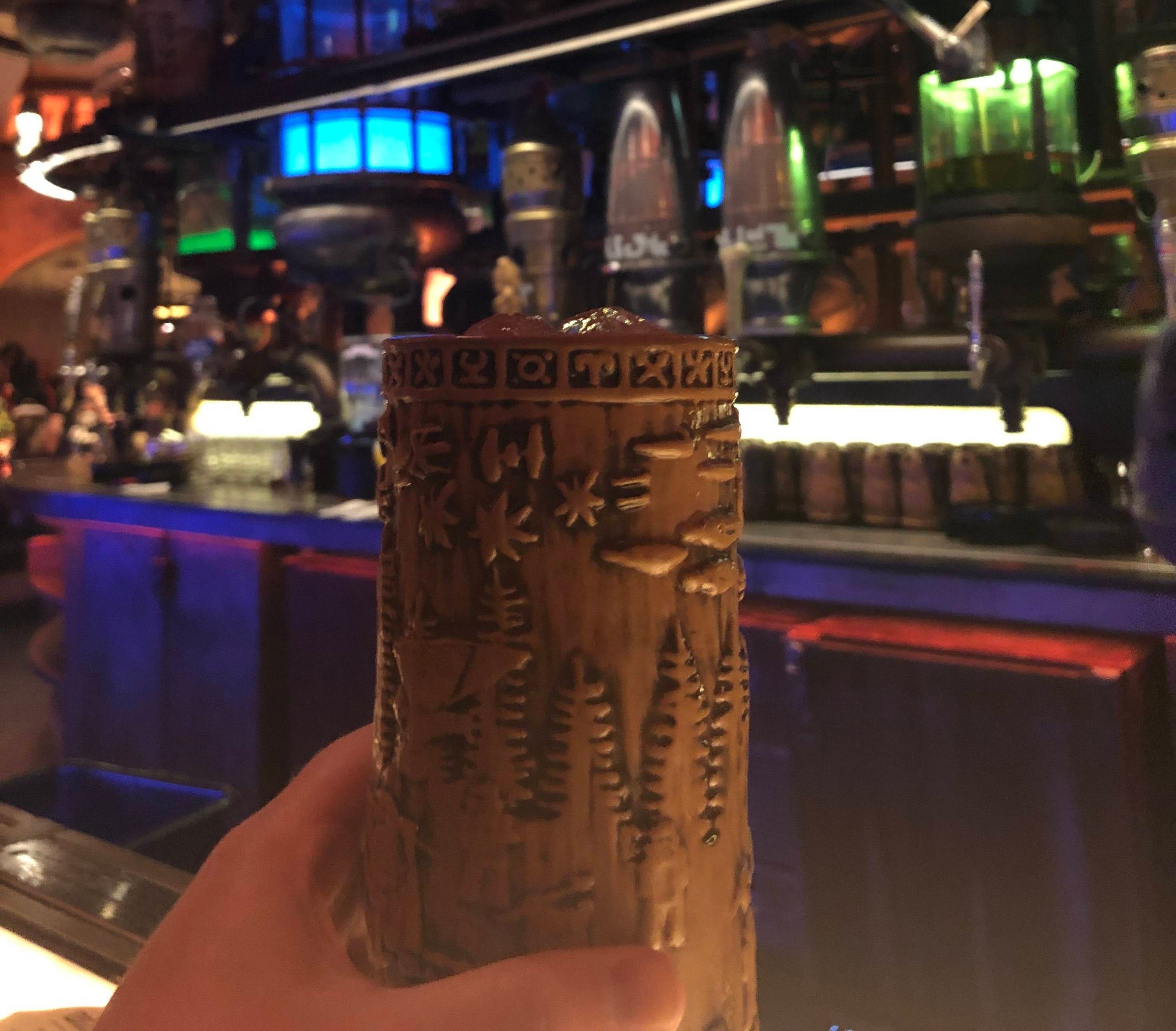 If you are in the market for an (expensive) fun nonalcoholic drink, the Cliff Dweller, also comes with a keepsake Porg mug and is quite tasty, comprised of ginger ale, a blend of juices, hibiscus-grenadine and coconut. Expect to spend $32 for the cool drink with the adorable mug.