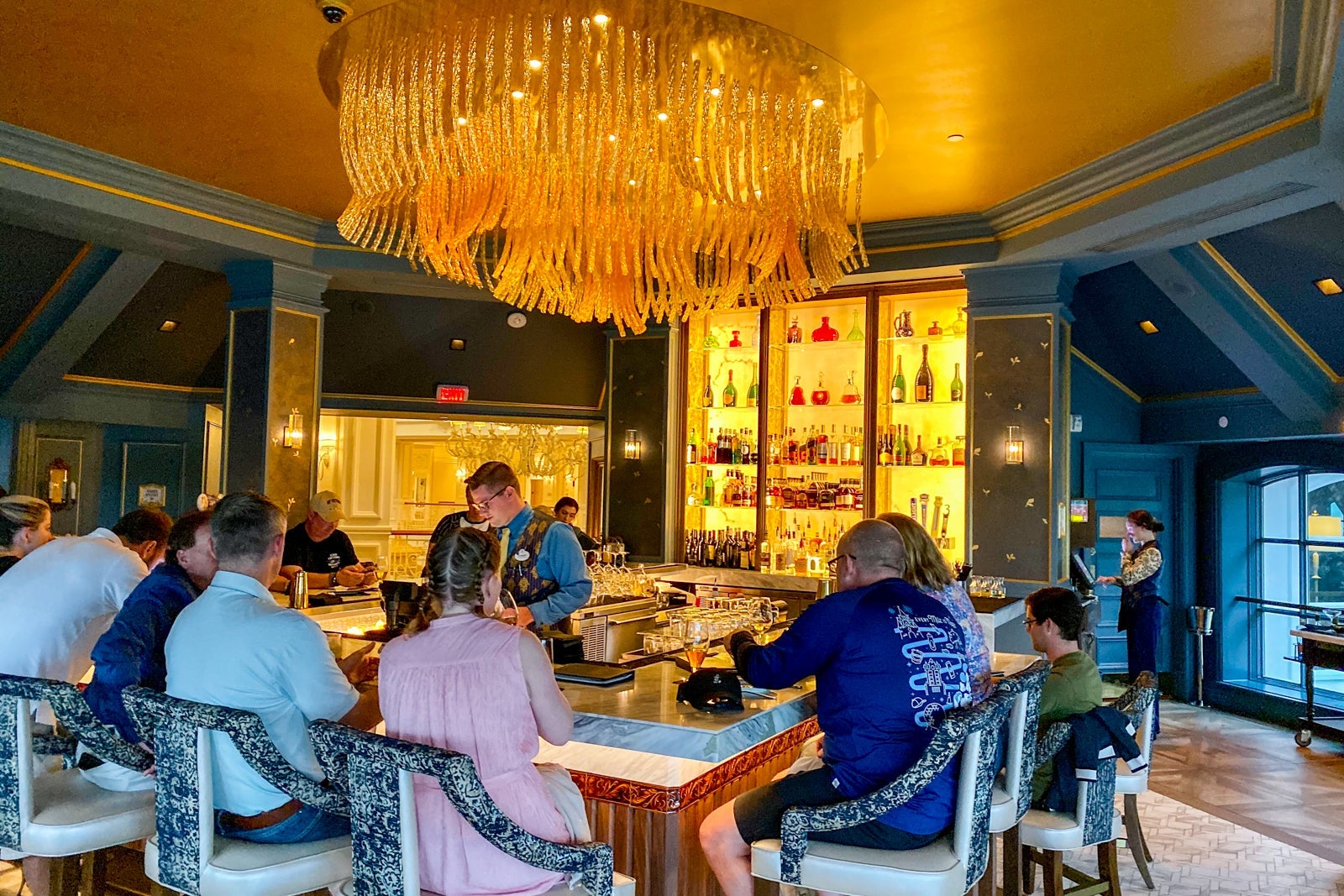 With just one outdoor table-service choice at Disney's Hollywood Studios, a quick trip on the Disney Skyliner over to Disney's newest hotel, Disney's Riviera Resort, adds another fun option. Technically the resort's pool bar, Bar Riva is a beautiful open-air space, tiled in serene shades of blue with lots of nods to the Italian and French Riviera.
