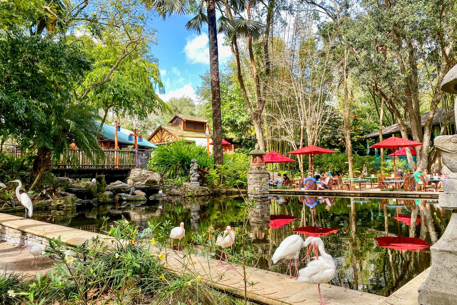 If the food weren't enough of a draw, Flame Tree boasts one of the most idyllic seating areas at any of the theme parks.