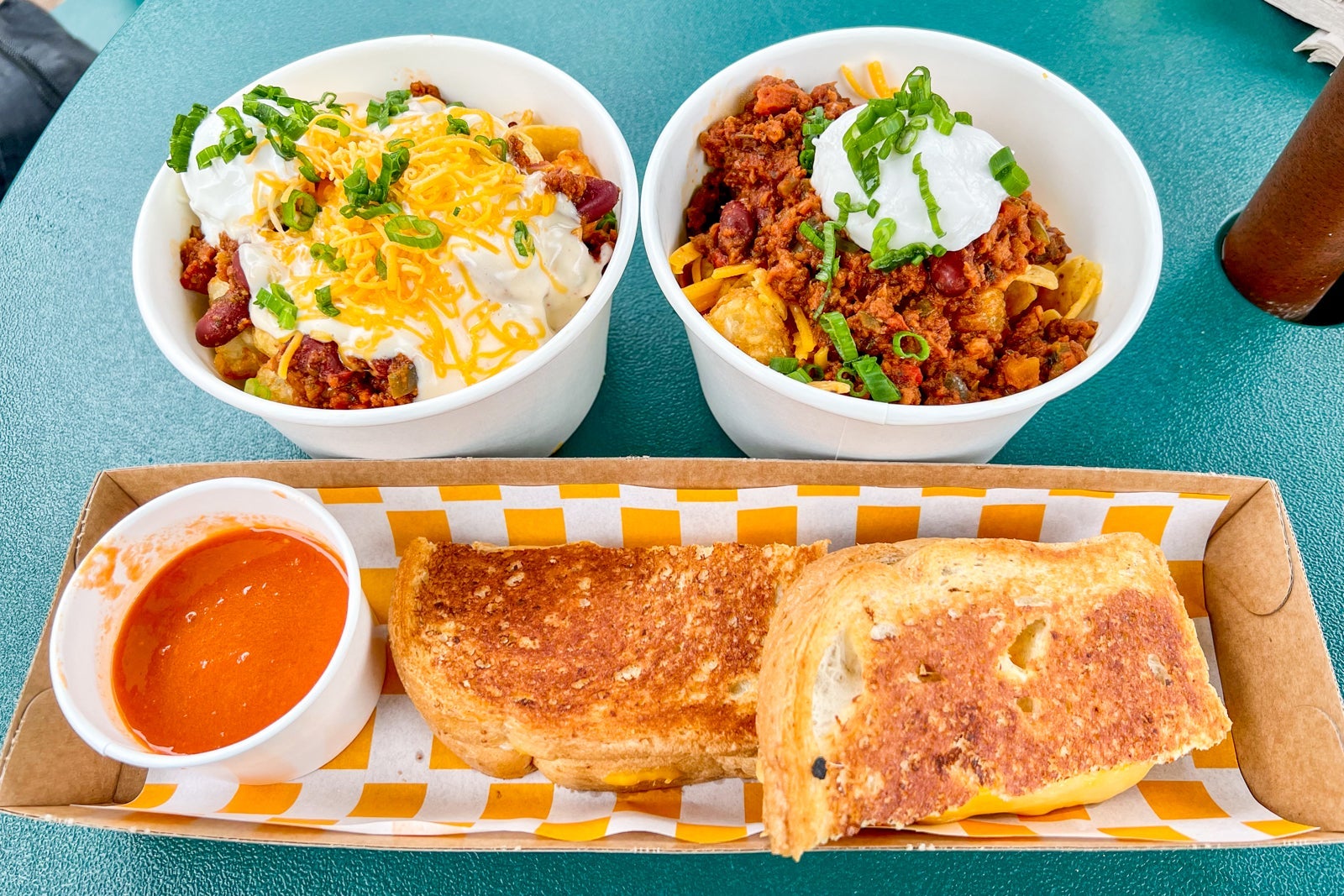 Serving breakfast, lunch and dinner, families flock to this colorful, all-outdoor space for its own takes on the classics. Everyone has their favorite, but you can't go wrong with the BBQ brisket melt, grilled three-cheese sandwich served with a cup of tomato soup for dipping or the "Totchos," an over-the-top tater-tots-meet-nachos concoction topped with chili, cheese, queso, corn chips, sour cream, tomatoes and green onions.