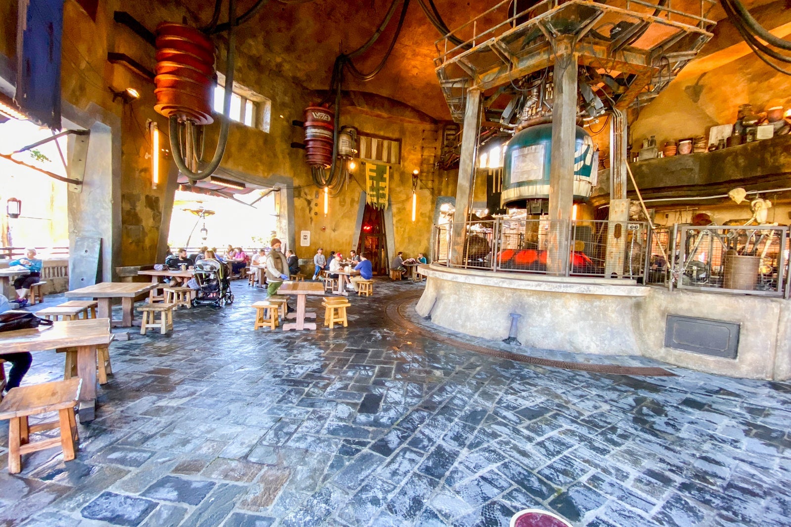 The seating area feels peaceful despite being steps from the hustle and bustle of Black Spire Outpost's Marketplace and the Millennium Falcon.