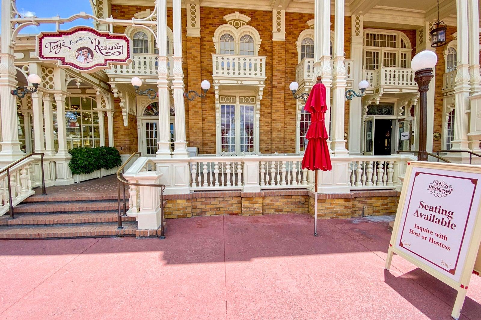 For outdoor table-service dining at Magic Kingdom, Tony's Town Square Restaurant is your only option, and it's not always available. The "Lady and the Tramp"-themed spot serves Italian-American classics such as spaghetti and meatballs, Tony's pizza pie and fettuccine alfredo. While the food tends to receive below-average reviews from diners, the outdoor patio is a lovely spot overlooking Magic Kingdom's Town Square area of Main Street, U.S.A.