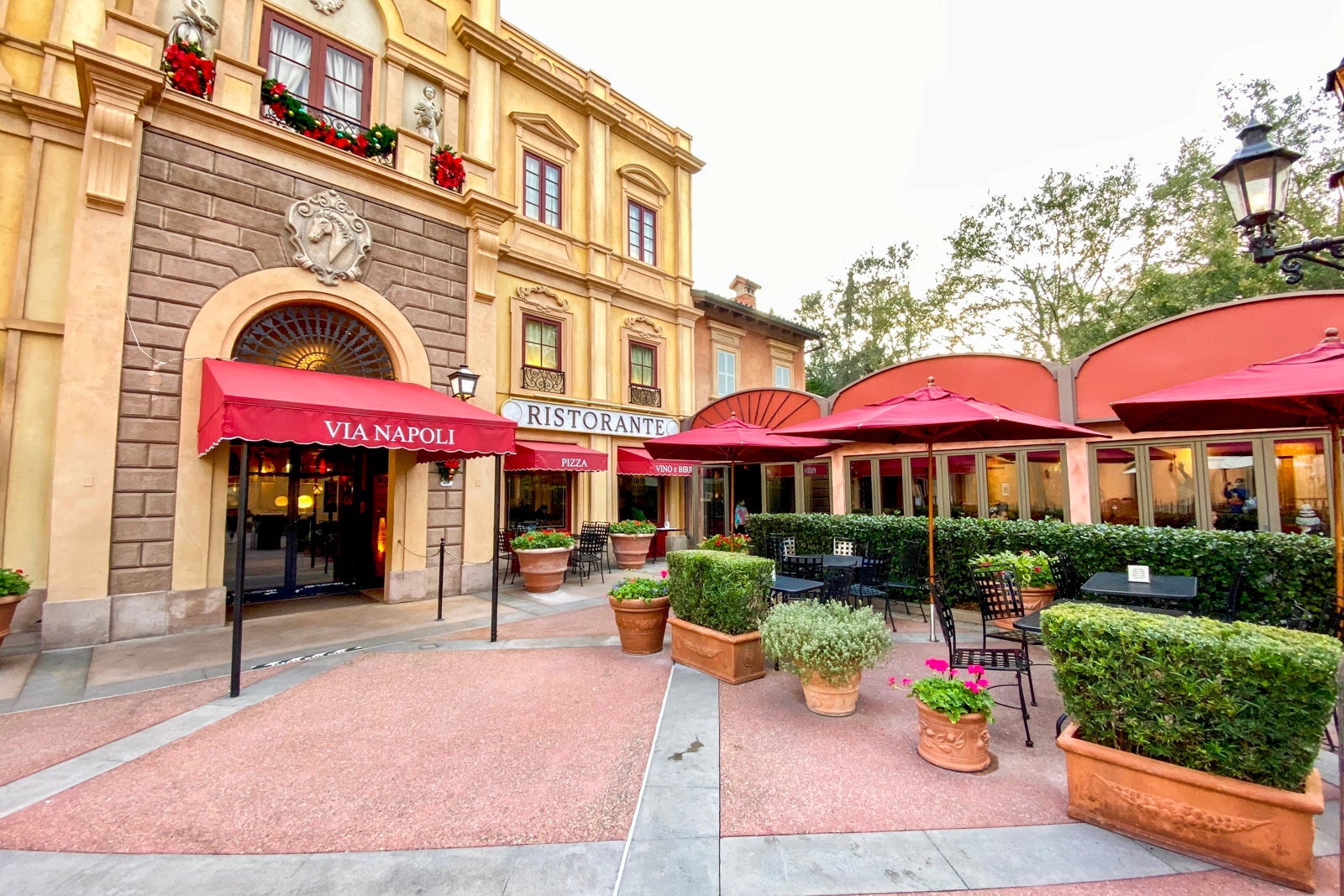 Serving easily the best pizza at Walt Disney World, Via Napoli in Epcot's Italy pavilion churns out authentic Neapolitan pies flash-fired in wood-burning ovens named after Italy's three active volcanoes.