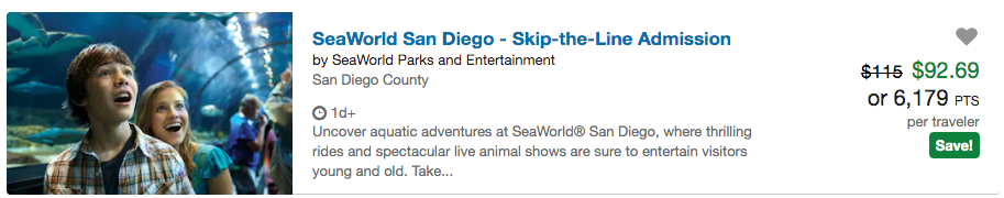 Sometimes you can use your points to cover the skip the line passes. For example, if you have the Chase Sapphire Preferred Card, Chase Sapphire Reserve or Chase Freedom (No longer open to new applicants), make sure to look at the Ultimate Rewards portal before paying for your skip-the-line passes as you'll find some options, such as the Sea World example below.