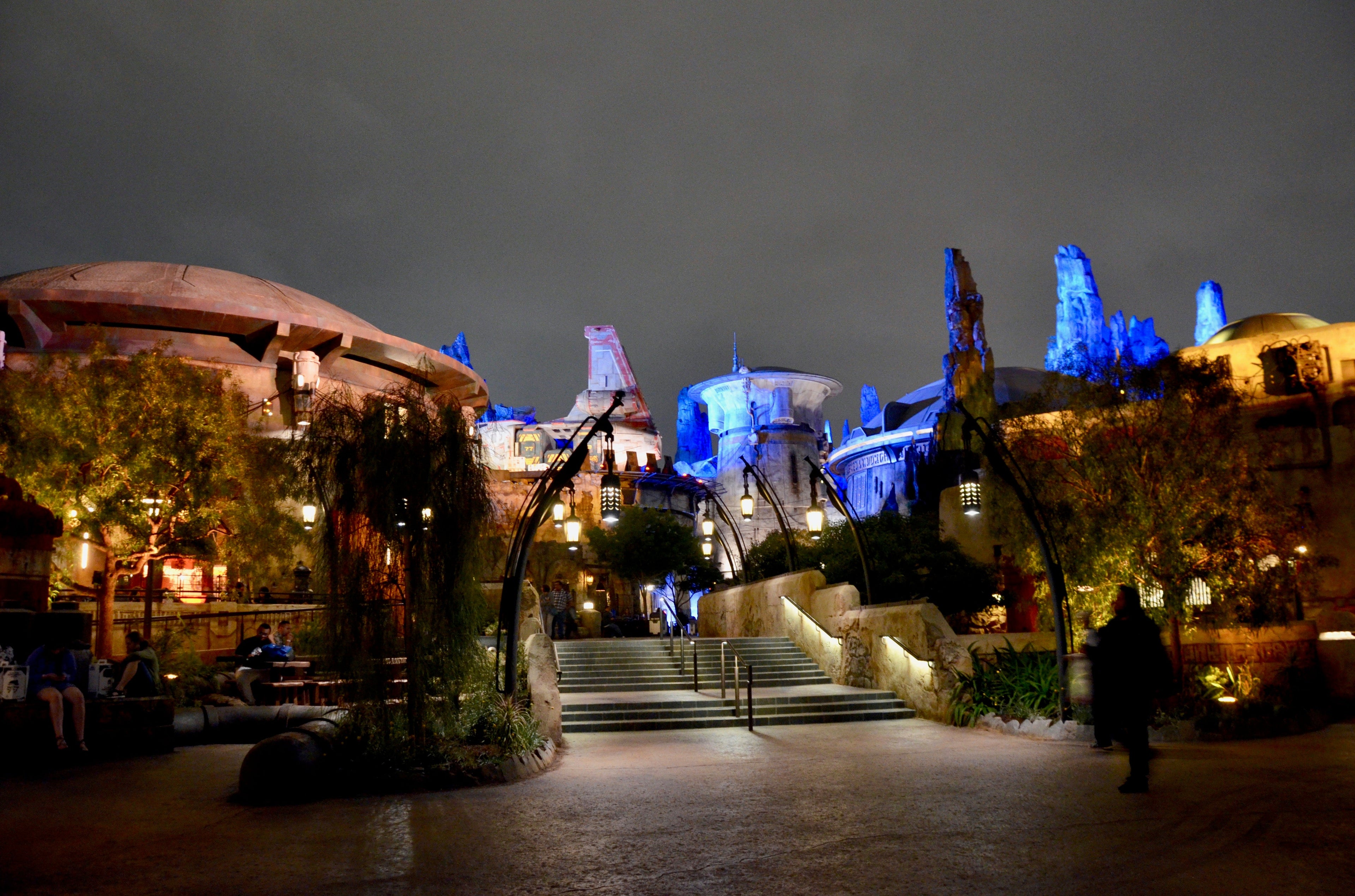 Although guests no longer need to plan which day, week or month to visit Star Wars: Galaxy's Edge in Disneyland, definitely consider time of day when visiting. The land has a very different feel in the daytime compared to the night. I highly recommend that any fan visit both before and after dark. In the evenings, the lighting is just beautiful. The park's evening fireworks are even visible over the spires of Batuu on nights when fireworks are offered.