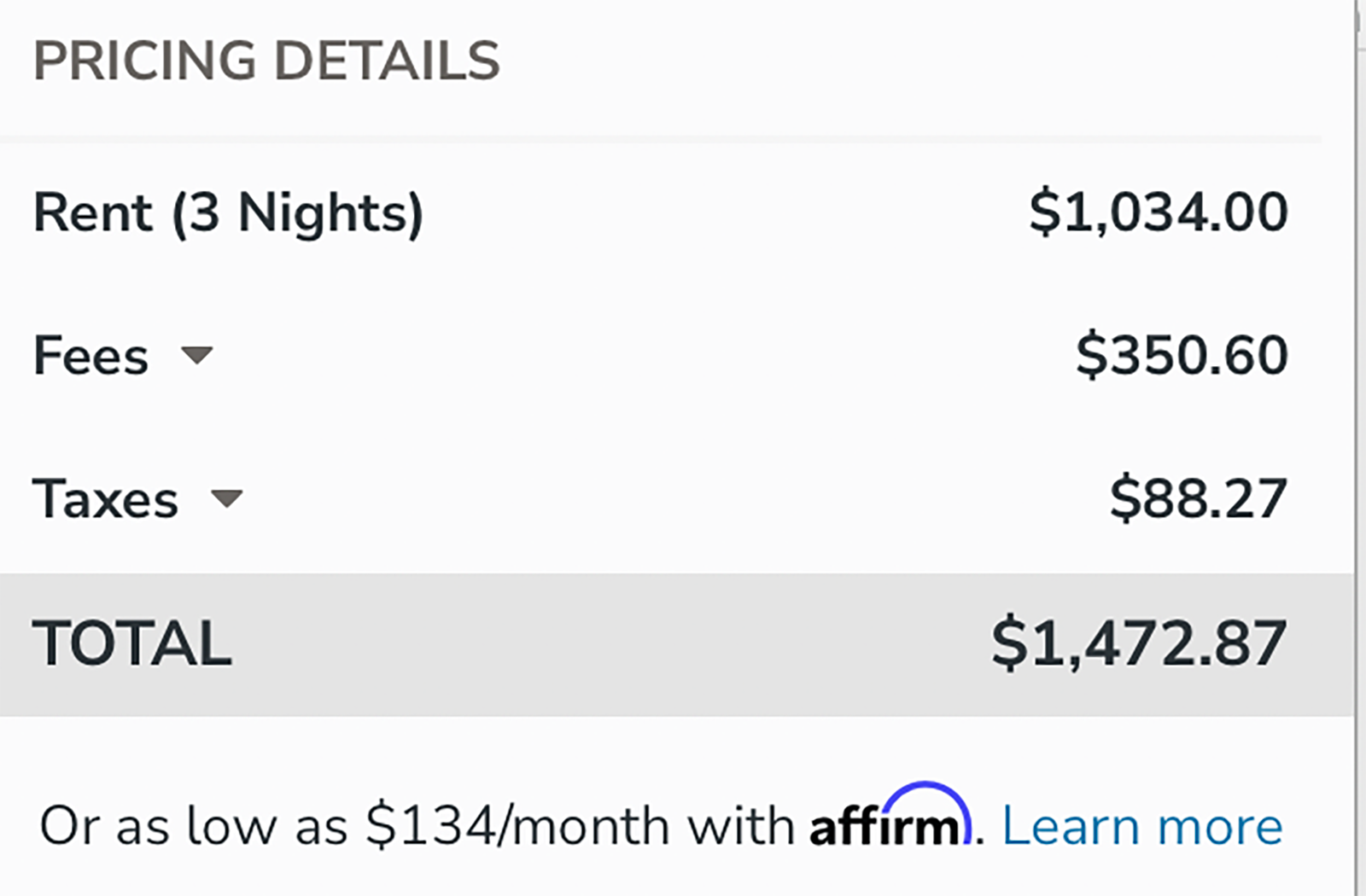 While the property was just below $350 a night in cash, factoring in the taxes and fees would have brought my three-night stay in Colorado to $1,472.87.
