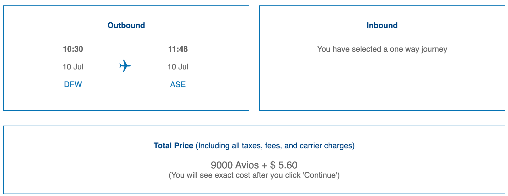Or, once you have a bit of basic award chart knowledge, you can see if your points stetch further with a transfer partner, such as British Airways. For example, if a round-trip flight from Dallas to Aspen is selling for $400 on American Airlines, that would cost you 32,000 points from your Sapphire card at 1.25 cents per point.