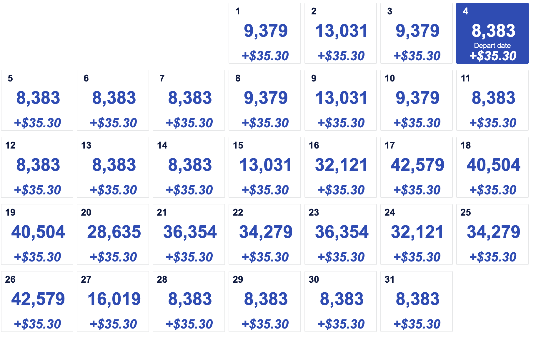 Since so many popular airline award currencies are now dynamic -- meaning the number of miles goes up and down just like cash fares -- you'll find the least-expensive award flights by looking at a variety of dates at once.