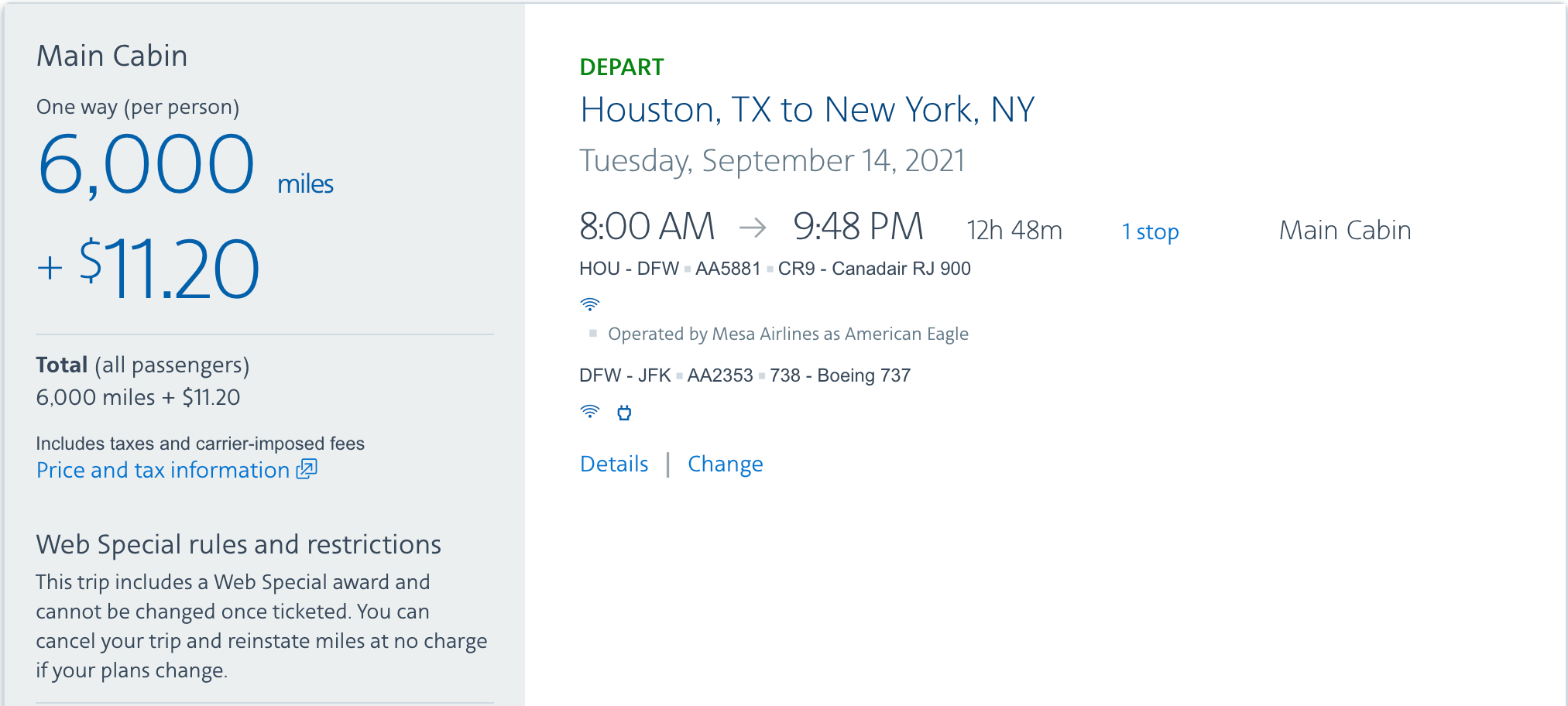 American Airlines has award prices that can vary dramatically thanks to Economy Web Specials that drop the prices of flights down to around 6,000 miles each way. The airline also has an award map that can help you find the cheapest award flights to or from where you want to go.
