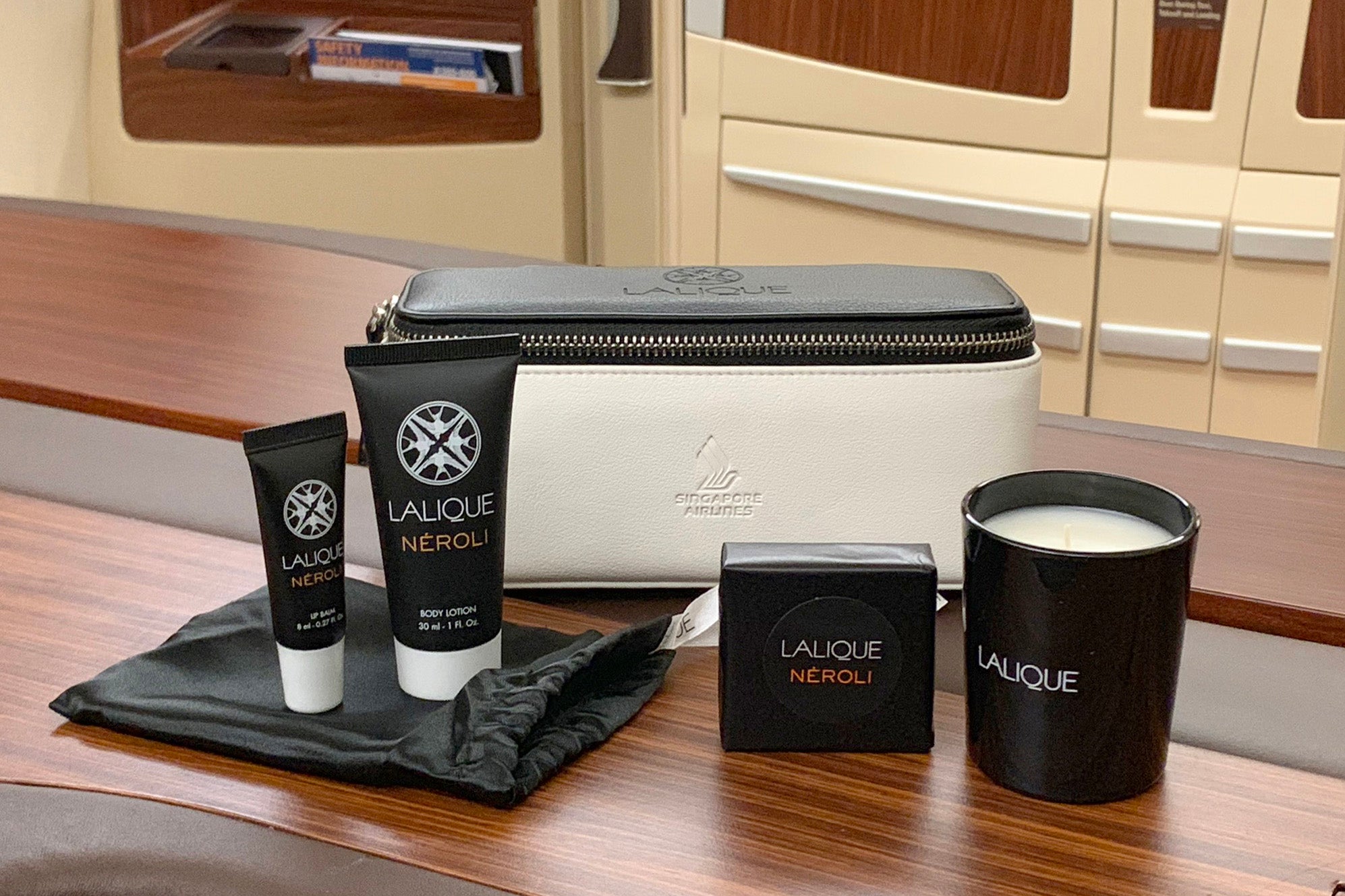 Singapore is a bit stingier with its take-home amenities, not offering pajamas or amenity kits on short- and medium-haul flights. As part of the launch of the new Suites class, Singapore redesigned its amenity kit in connection with Lalique, as well as its pajamas.