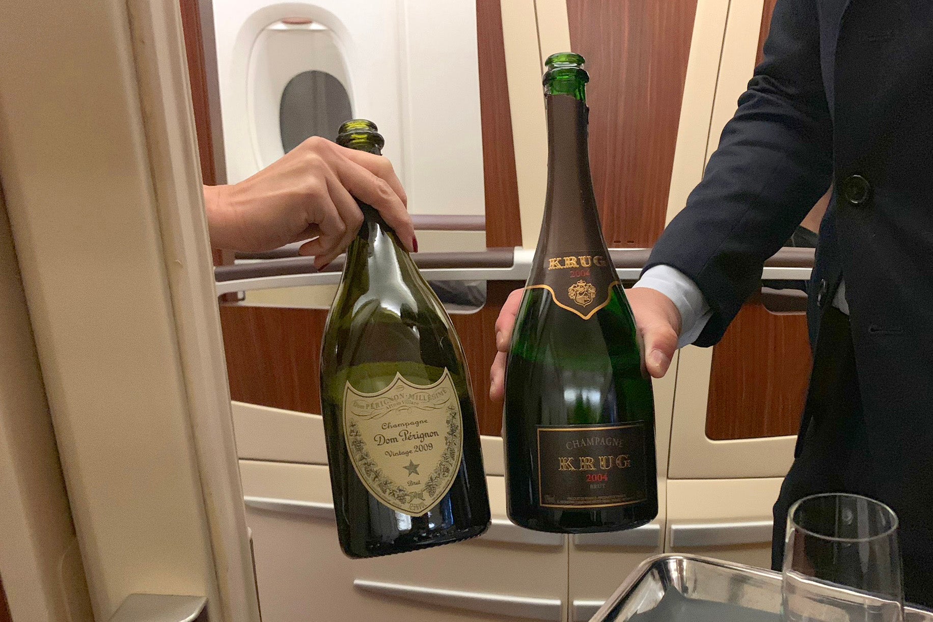 You'll currently find Emirates pouring Dom Perignon 2009 champagne in first class, though the airline has been known to swap in other limited-edition vintages from time to time.
