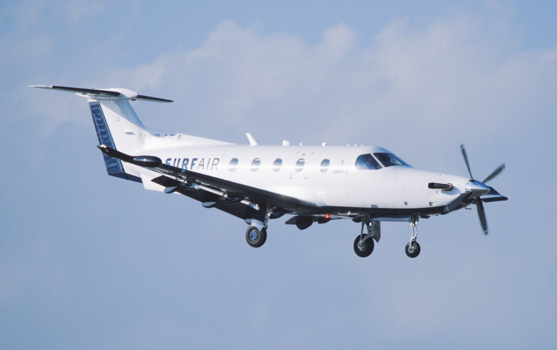 A Surf Air Pilatus PC-12 landing at Burbank. (Photo courtesy of Surf Air)