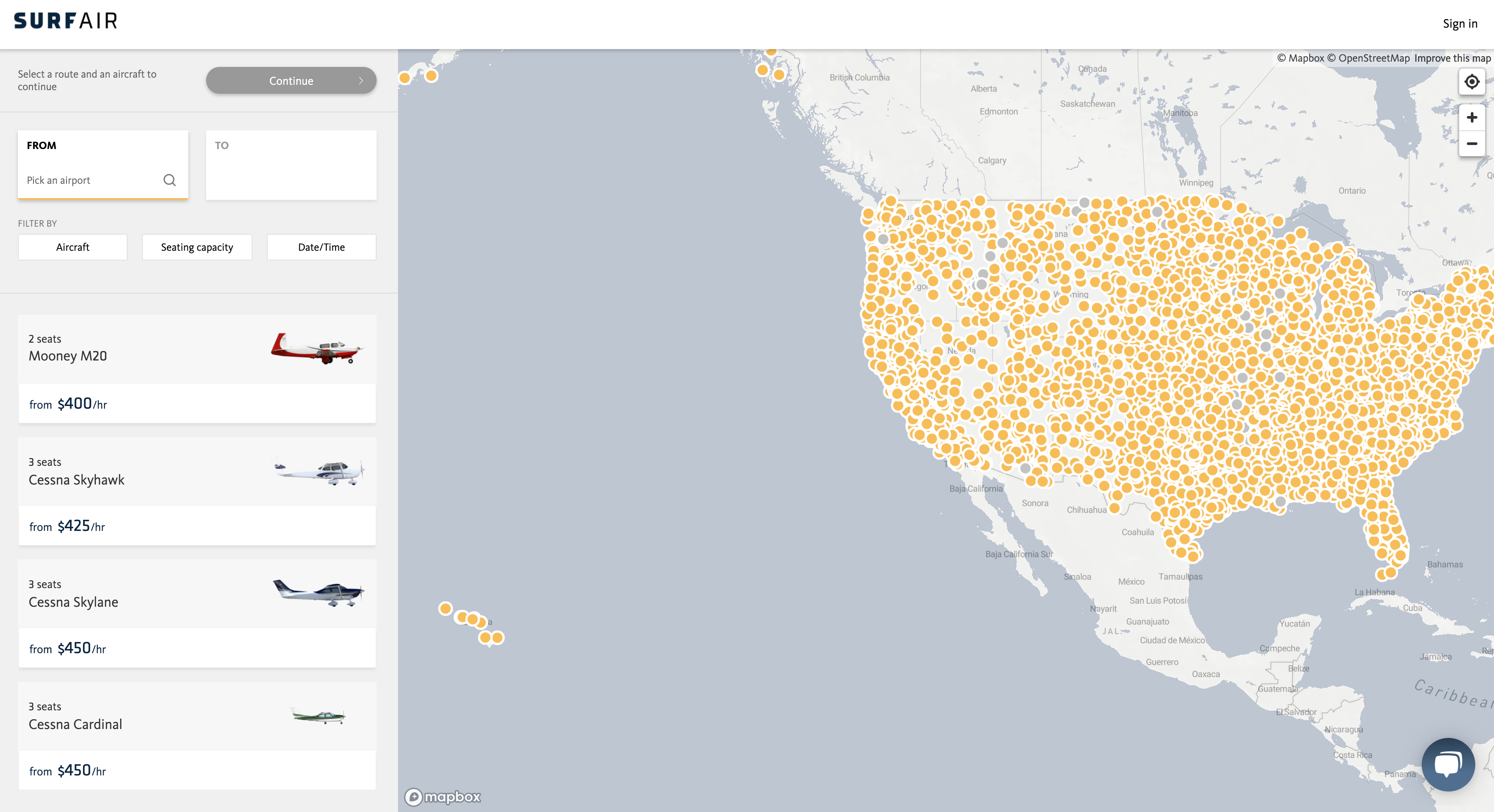 Book on-demand private charters with Surf Air online. (Screenshot courtesy of Surf Air)