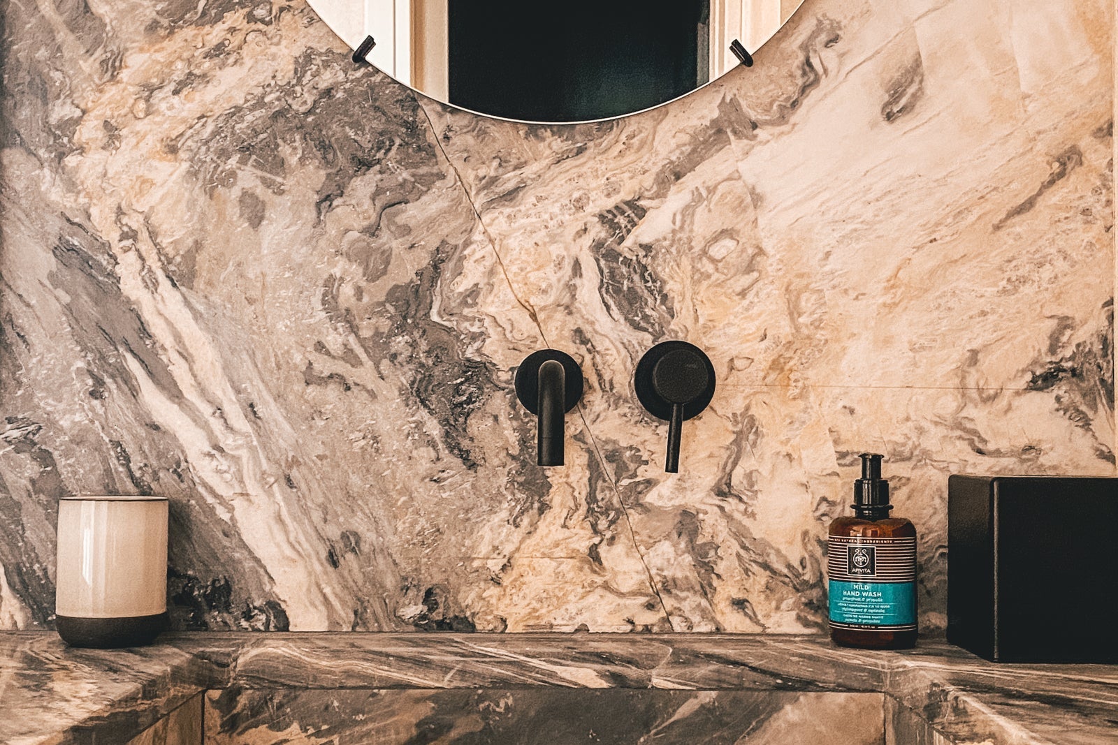 The attention to detail in the bathroom was stunning. Just look at that marbling!