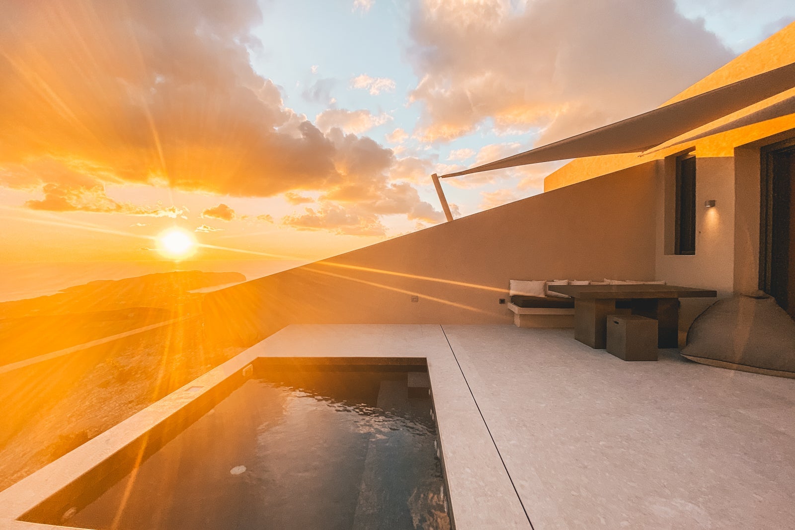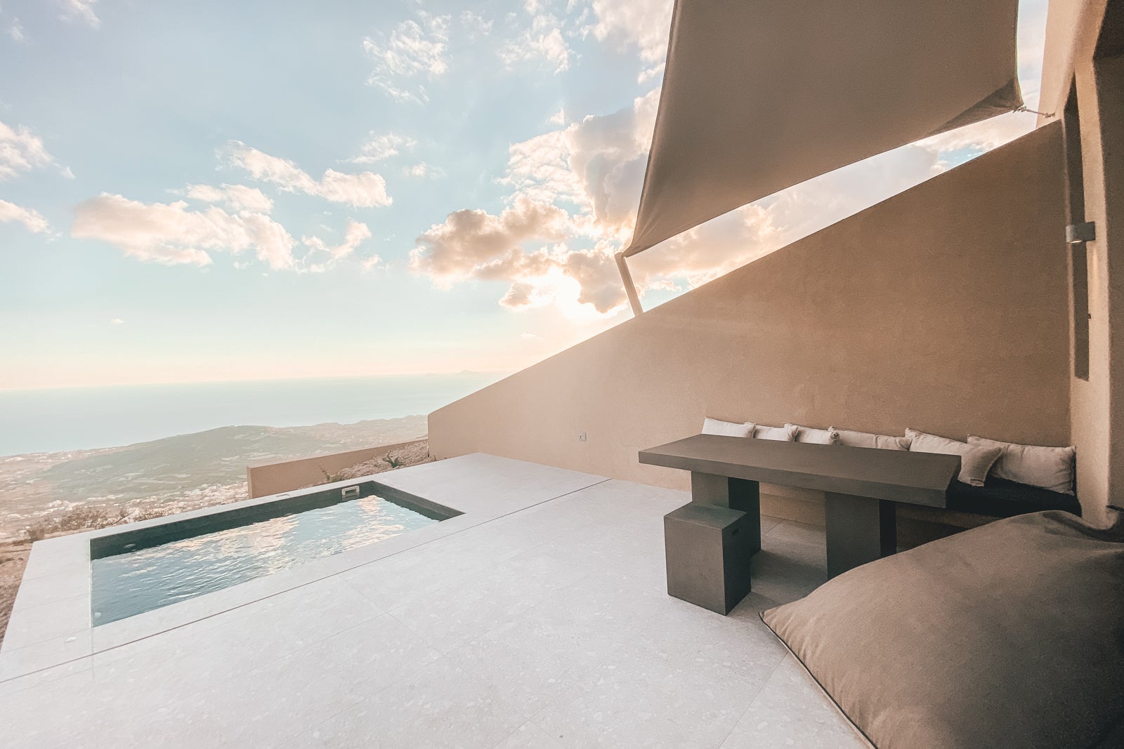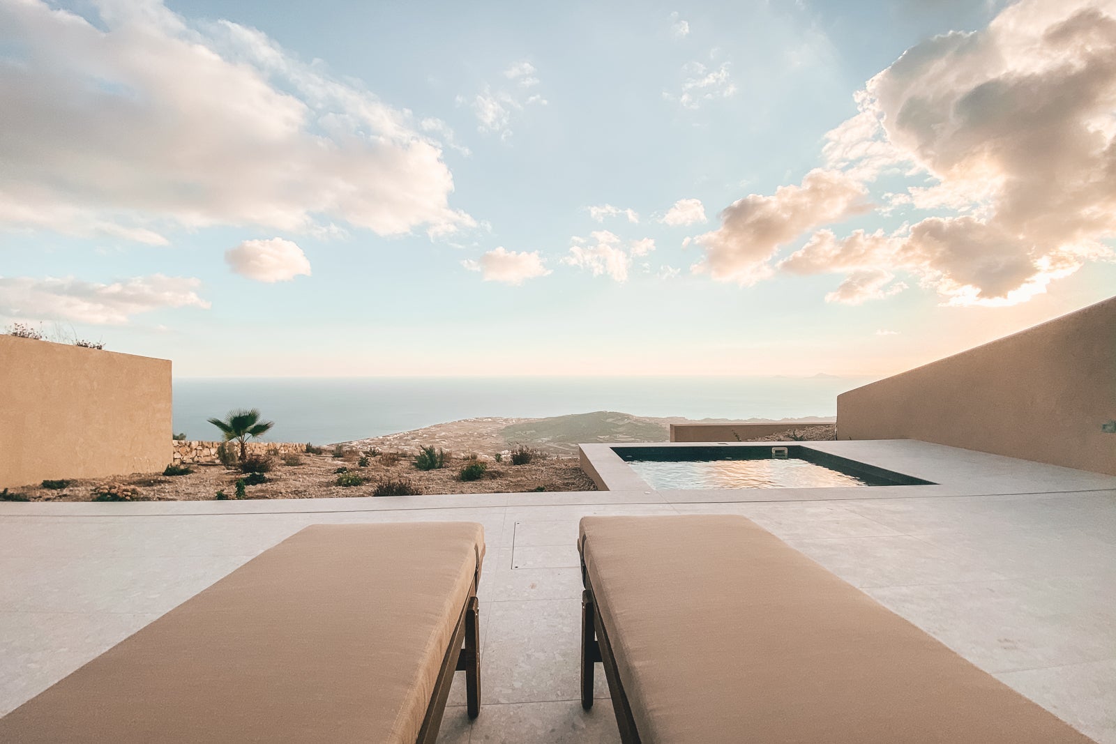 Each villa also has a plunge pool and the two bigger properties have larger pools. All pools are heated, which is a welcome feature as temperatures can drop given Santorini Sky's altitude — especially toward the end of the summer.