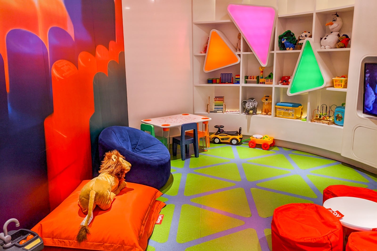 If there is no child play area, always watch your kids closely. The main section of the lounge is not a playground; other passengers won't appreciate them running through the space or jumping on the furniture.