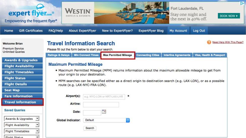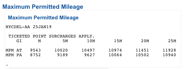 In this example, I looked up MPM from New York-JFK to New Delhi (DEL). As you can see, it pulled up the MPM via both the Atlantic (AT) and Pacific (PA), which is great because American allows you to transit via Europe or Hong Kong now.